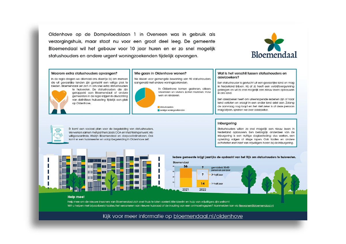 Infographic over de opvang van statushouders in voormalig verzorgingstehuis Oldenhove in Bloemendaal.