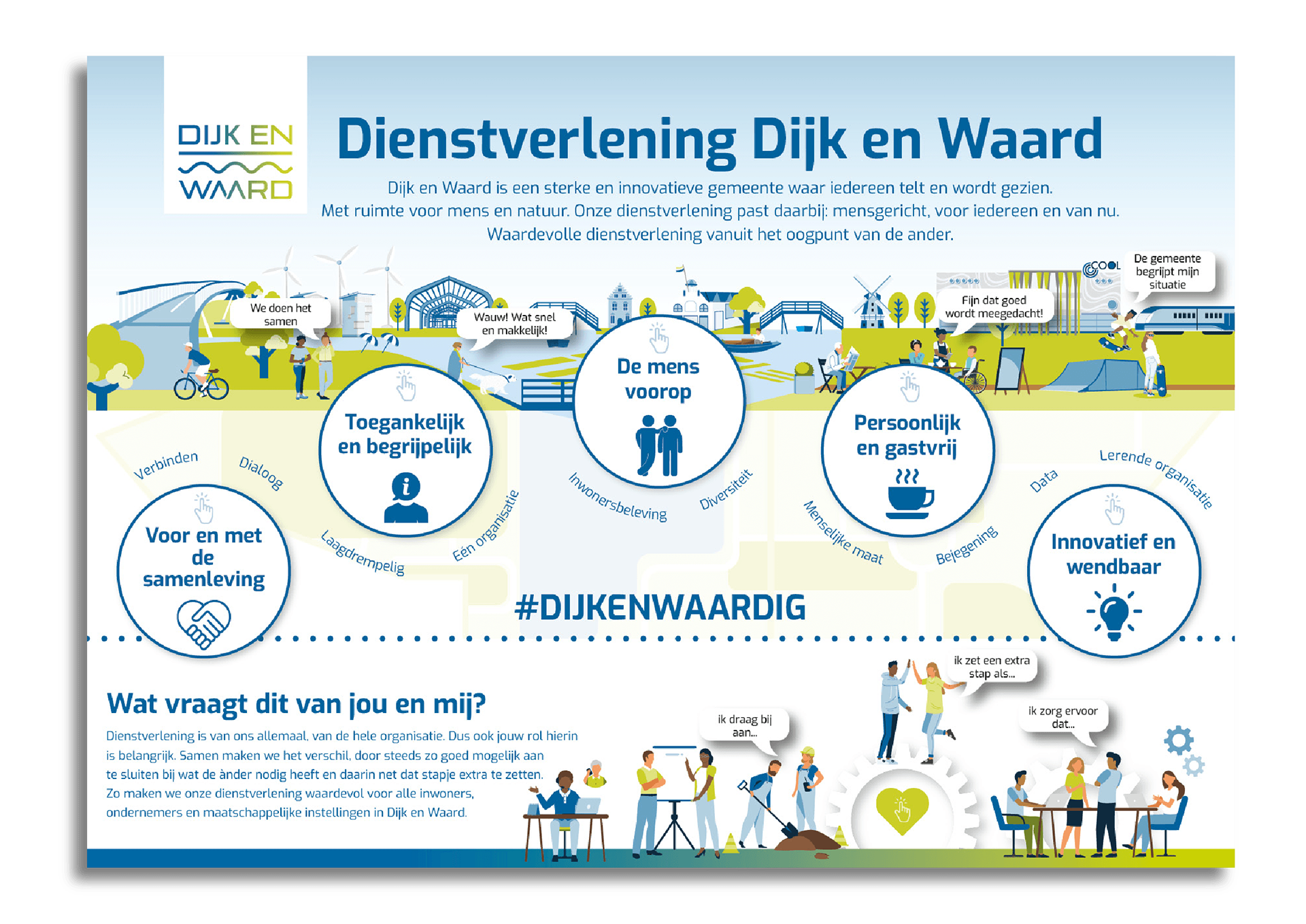 Interactieve infographic over de visie op dienstverlening van de nieuwe gemeente Dijk en Waard.